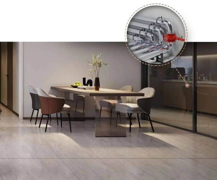此外,整体防水工序上也是几经打磨,防水涂层铺到天花顶,远超业界只到腰线的防水水准,地台铺就900mm水泥与楼板保持一体,外配防外溢门槛石,多重防水,确保滴水不漏,给予居者完美的卫浴体验,尽展从容悠然。