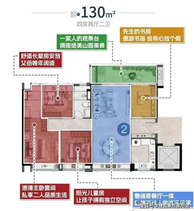 建面130平四房两卫,四开间朝南,南北对流,舒适度较高,双阳台,可打通客厅旁的房间做成大方厅