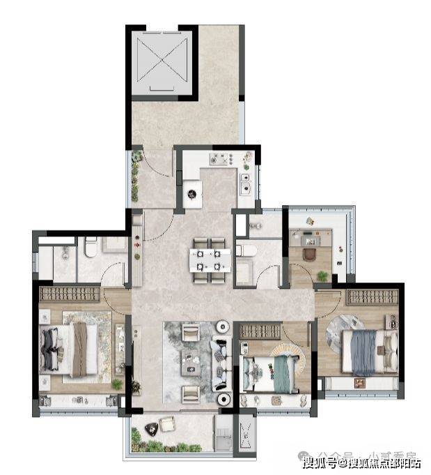 建面104-106平四房两卫,四开间朝南,采光面达13米,独立入户花园,可打造收纳柜,约8平方电梯前厅,独立主卧套房两代同居互不干扰