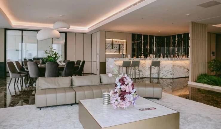 超星级酒店式大堂,由豪宅设计专家HWCD以“时间艺术中心”为设计理念打造,荣获英国2022's Leaders In Luxury Awards奖项。整个空间犹如一件可以收藏的艺术品,每一次归家都是一次逛展之旅。