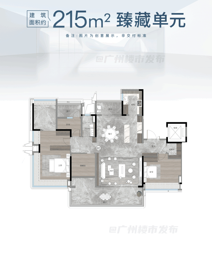 • 230㎡+户型:独梯独户、双主套、L型270°飘窗,私家电梯厅堪比五星级酒店。
