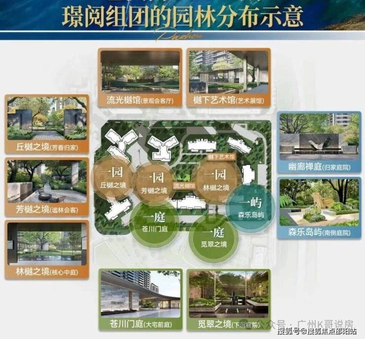 央园林整体实现“一园两庭一屿”多重景观布局。