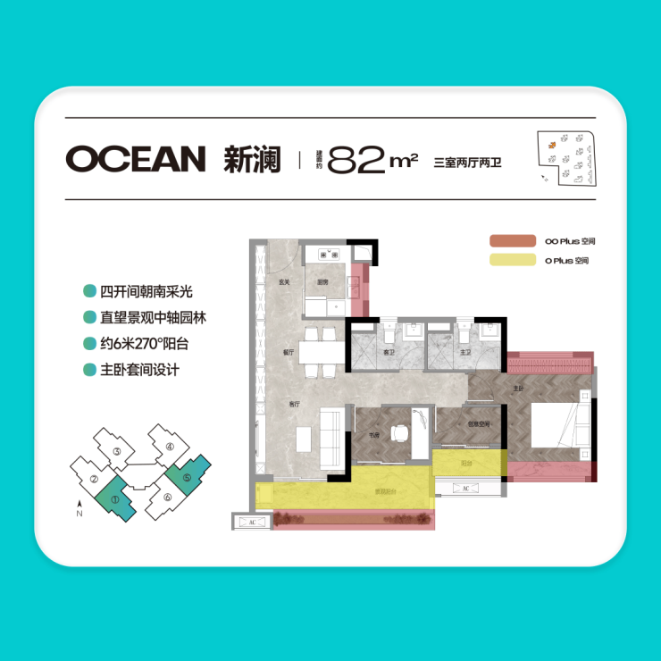 【约82㎡ 3房2厅2卫】南向看山