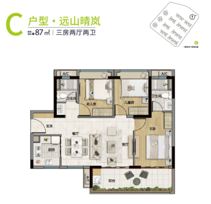 【约87㎡ 南向3房2卫】