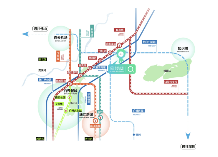 交通便利,紧邻地铁14号线钟落潭站,距离地铁站约500米,出行方便。同时,周边还有多条公交线路和自驾路线,可轻松抵达广州中心城区。