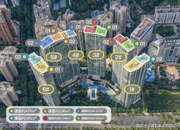 小区建筑面积22.6万㎡,容积率高达7.09,由6栋38-40层超高建筑组成,共417套房源,全部为大户型,涵盖235-435㎡三至五房,以及663-1505㎡复式。