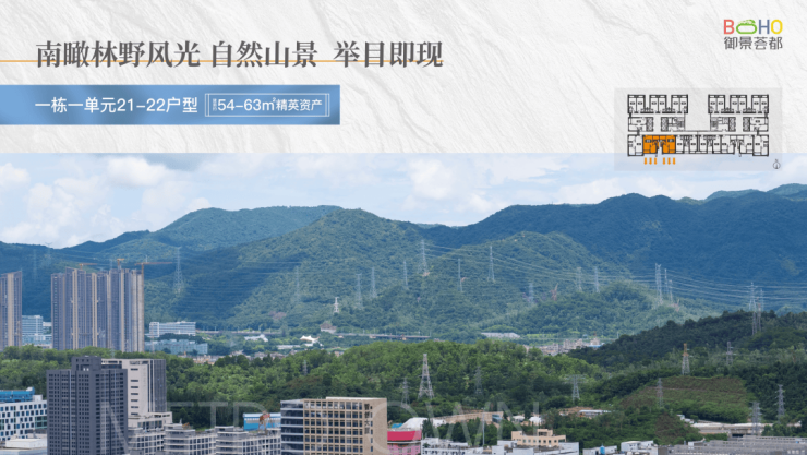 京基御景荟都分三期开发,一期是由4栋总层42-44层的公寓和3栋办公组成,一期建面30万㎡,二期三期是由学校,酒店,办公,公寓组成。目前在售一期产品