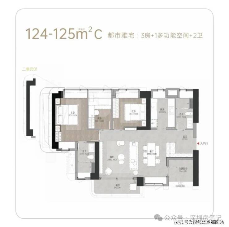T6栋(三单元):总高58层,4梯6户,111-124㎡3-4房。30楼以上1100万-1380万。
