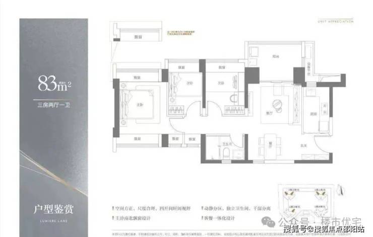 产品面积段:建面约83—113㎡三至四房