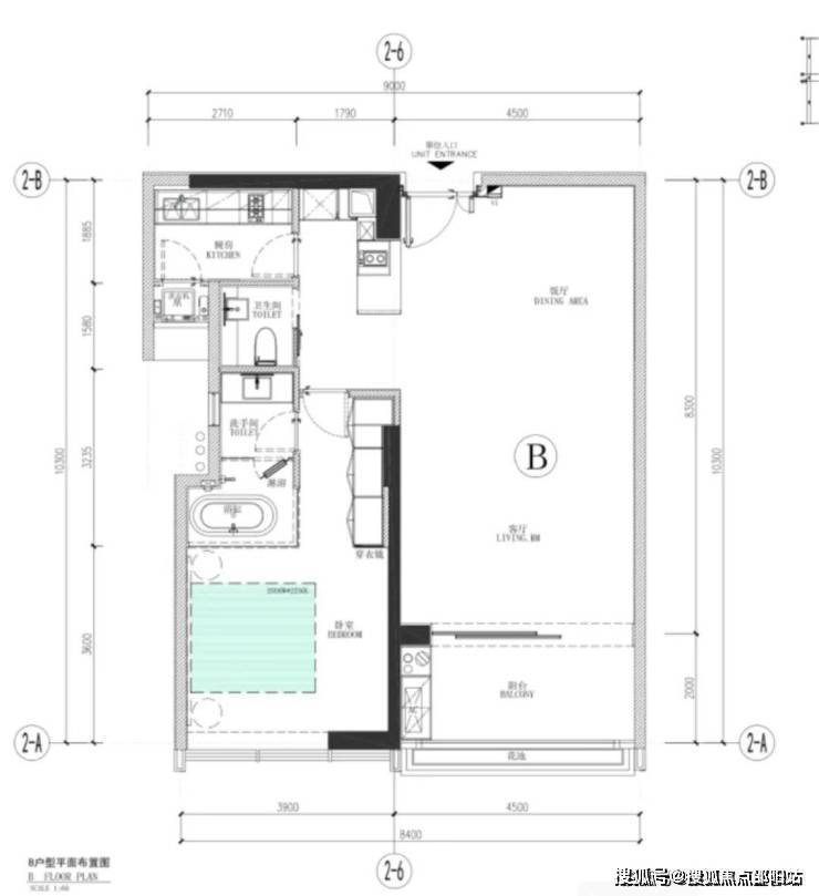 B户型:105平方米,一房一厅