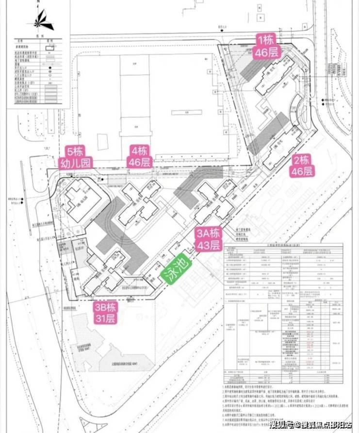 总规划605户,全部都是商品房,规划有126-139-143平的4房2卫,197-206-282平的4房3卫户型,做到了户户朝南向,3栋A/B座跟4栋是3梯4户,1/2栋2梯2户设计,地下室有3层,总规划车位1046个,其中带充电桩车位314个,车位占比约1:1.73。