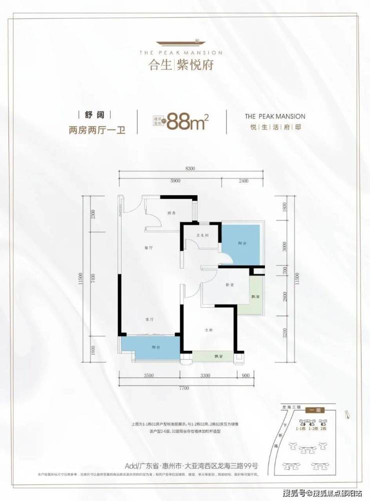 开发商是大亚湾合盛实业有限公司,项目总占地约12.5万平,总建面约50万平,共分2期开发,共15栋住宅加1栋公寓,一所小学以及幼儿园,总户数3075户,车位数4112个,容积率3.0,物业公司为国家一级资质物业康景物业,目前在售一期的1栋和2栋,户型有88-105平的三房,123平的4房!