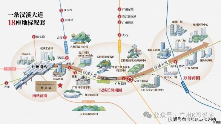 它以年客流量1.7亿人次的广州南站为中枢,无缝接驳4地铁、5高铁、6城轨。