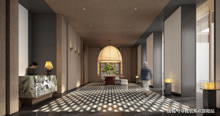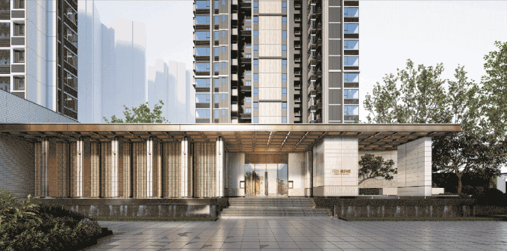 约40米长的岭南美学门庭,对标了高奢酒店的设计。