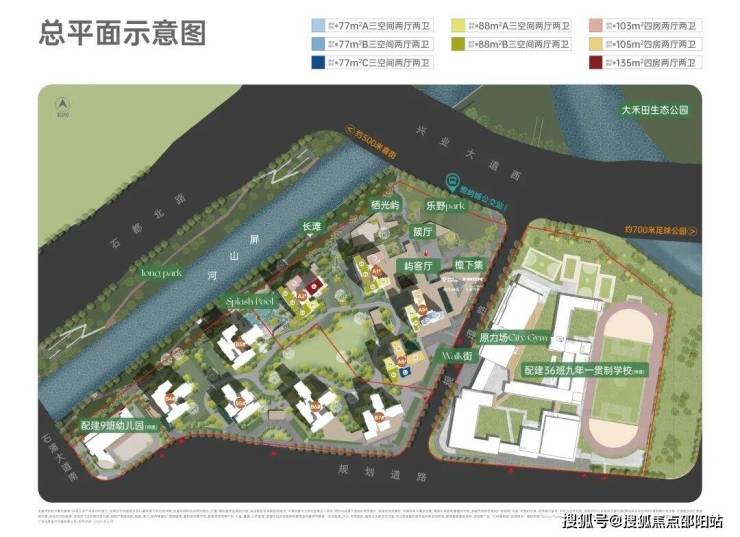 户型方面,主推建面约77㎡、88㎡、103㎡、105㎡、135㎡三到四房,作为南站万博首个新规产品,实用率超120%。