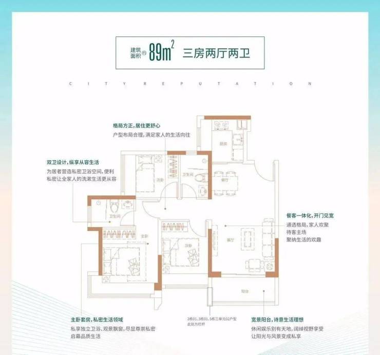 89㎡的3房2厅2卫,折后总价263-275万,单价约2.95-3.09万/㎡。