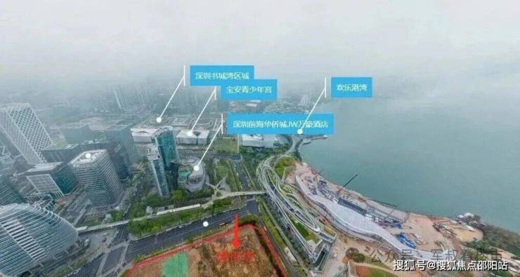 根据现场航拍显示,项目8个方位中有6个方位能看海景:其中东向直面欢乐港湾摩天轮与前海湾;东南向海景与城市景观交汇;南向视可近距离欣赏前海湾景致;西南向则收揽公园绿意与海湾风光,远眺企鹅岛。