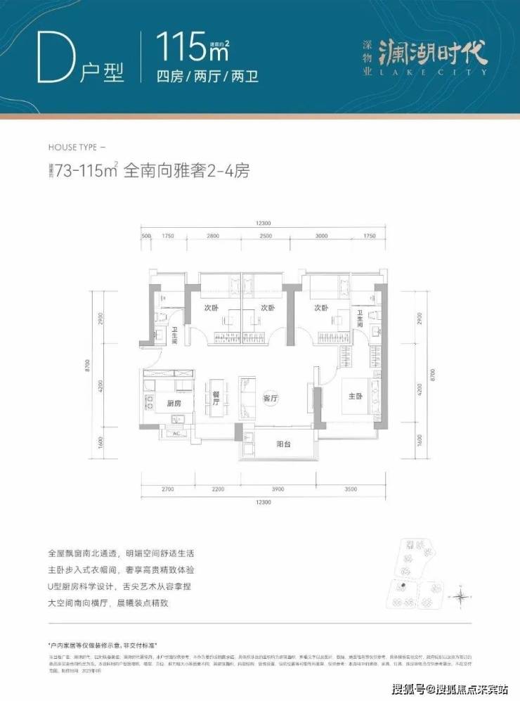 产品面积段:建面约73-115㎡全南宽奢2-4房
