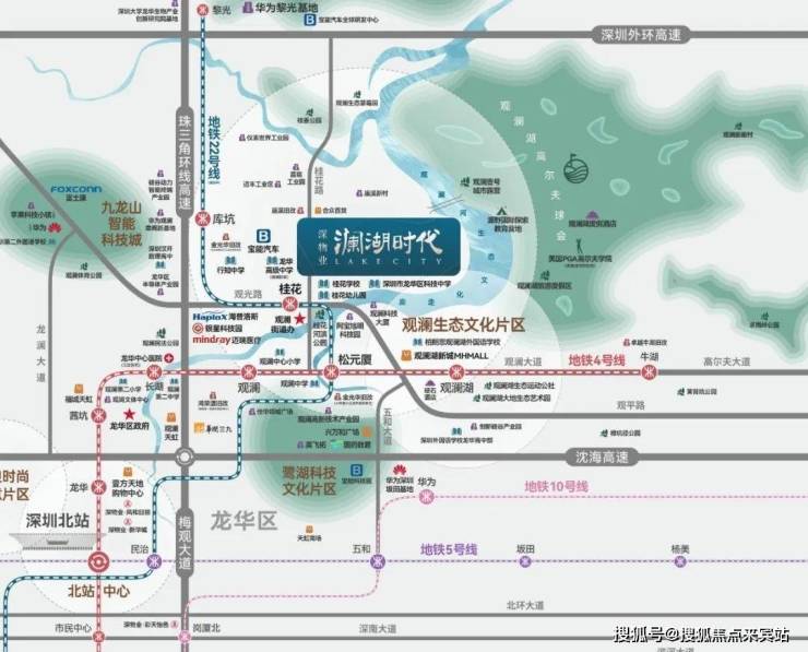 深物业澜湖时代,位于龙华区观澜街道观光路与桂花路交汇处北侧约200米,项目地处的观澜街道,在2023年全年规上工业总产值首次突破700亿元大关,达708.4亿元,规上工业企业达523家,稳居全区第一,新增国家高新技术企业224家、总数突破650家。新增专精特新中小企业83家、国家专精特新“小巨人”19家。中科飞测、比亚迪仰望、烯格微电子等一批重大项目先后落地。数字经济蓬勃发展,核心产业产出增速长期保持两位数。