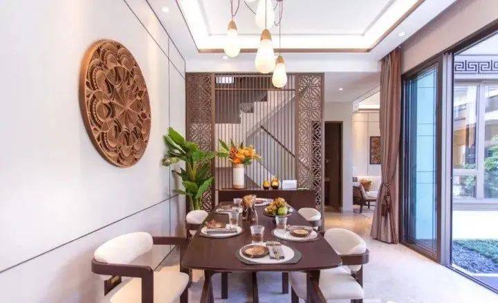 客厅、餐厅以舒朗的姿态,镶嵌于院落,构成创新的L型布局,几乎走到哪儿都可以推门入院,亲近院藏天地的美好。