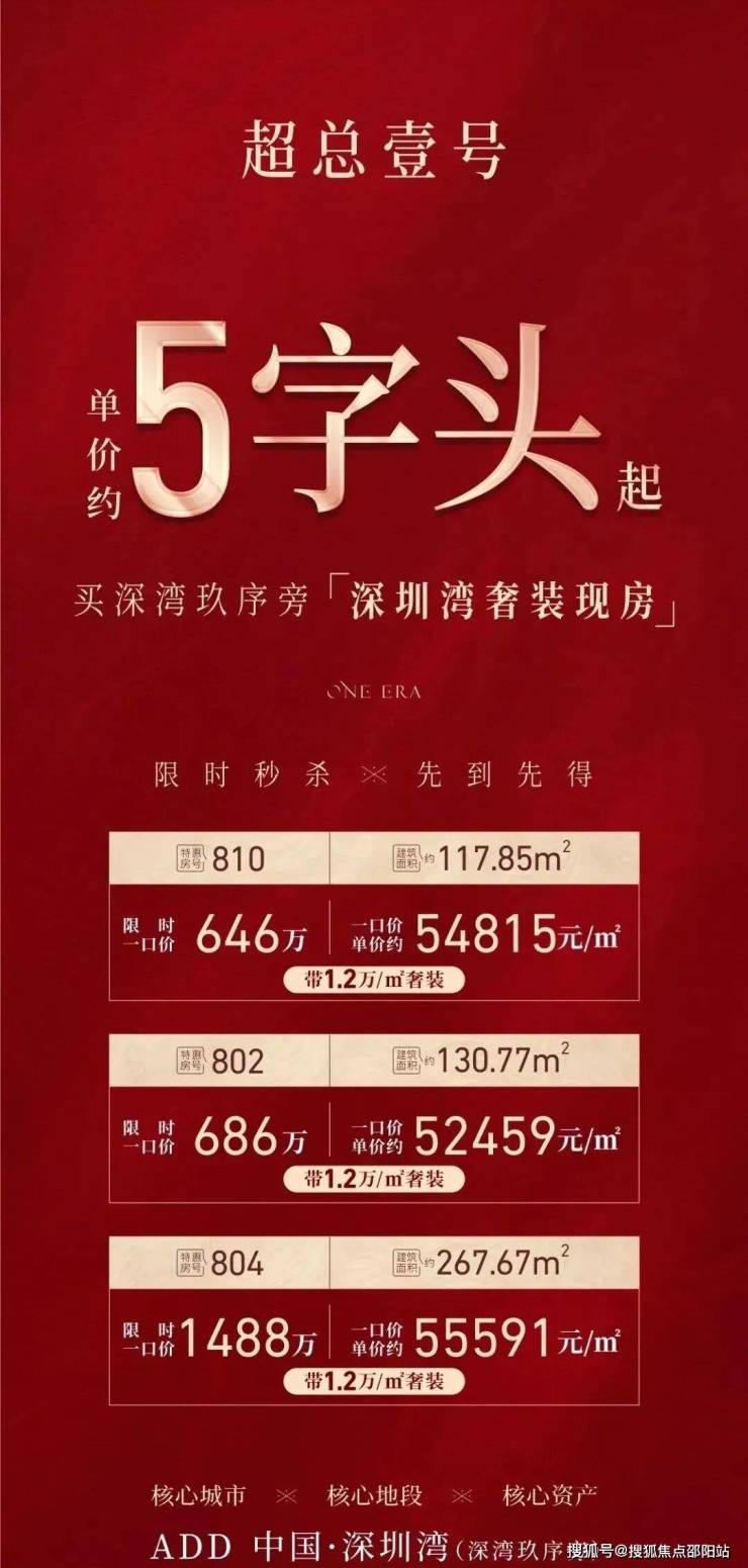 位于深圳湾的【超总壹号】火出圈,背后原因原来是单价约5字头起,四分之一旁边中海深湾玖序的价格,就能买建面约120-280m²的深圳湾现房,上车门槛仅需600多万起!