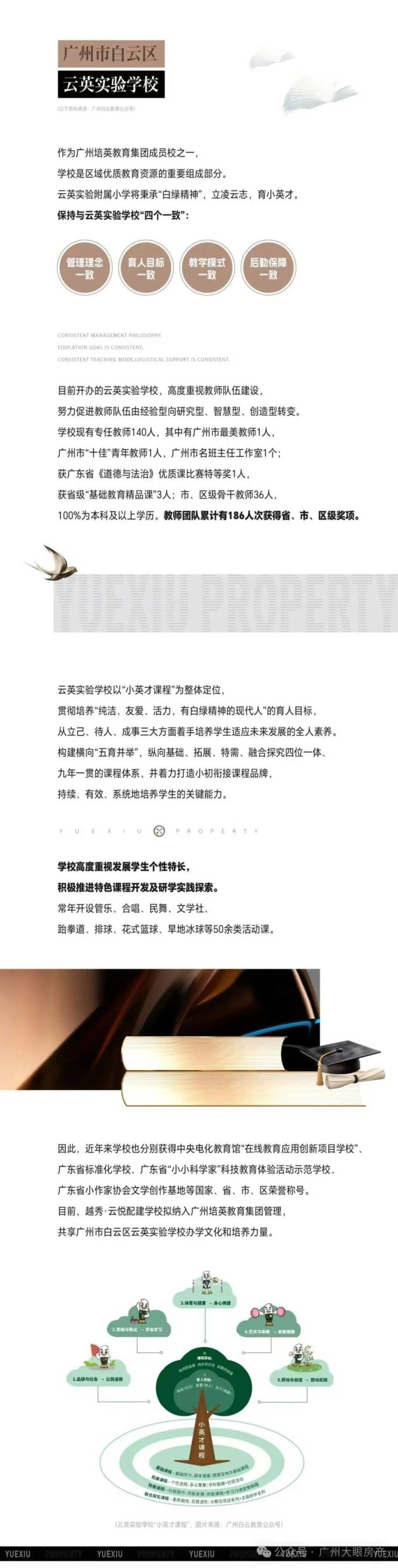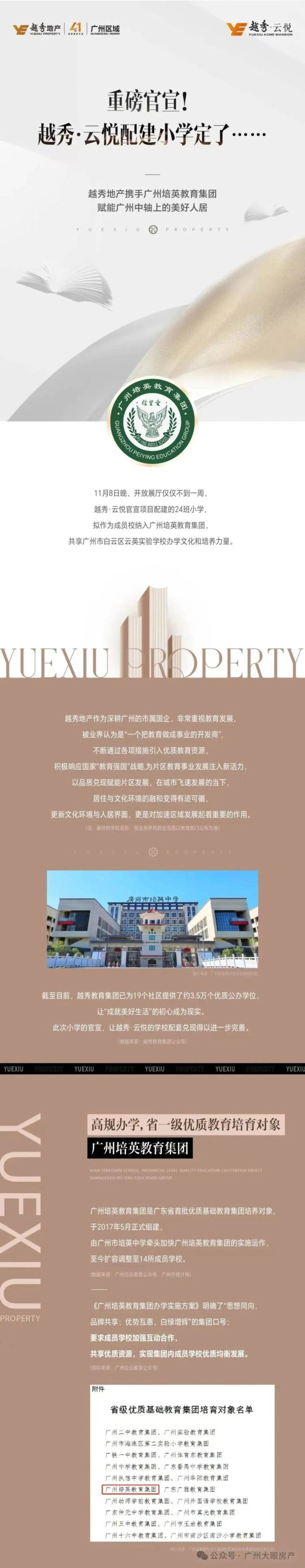 至于学校,云萃内部没有配建学校,越秀云悦配建一宗24班小学用地+9班幼儿园,引入培英系,共享广州市白云区云英实验学校资源,既然同个开发商、同个项目,学校大概是能够共享的。