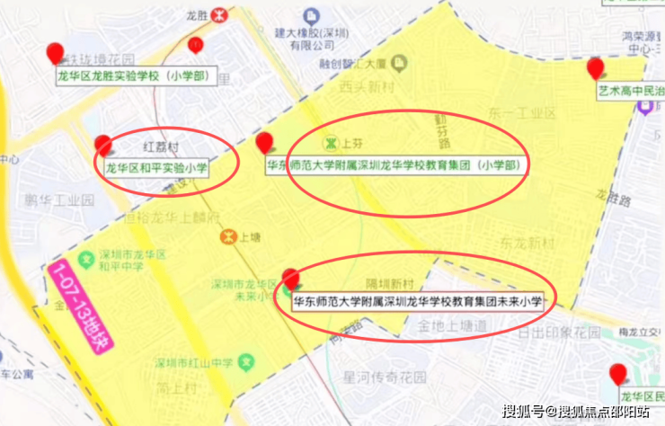项目的配套方面,首先是交通配套,项目距离地铁四号线上塘站仅600米,步行约十分钟可达,从上塘站两站可达深圳最大的北站枢纽,通过深圳北站可快速换乘5号线直达福田、罗湖、前海等核心区域。学校配套项目紧邻龙华区和平中学、洪山中学等重点学校。另外,北地块规划配件有一所9班制的幼儿园,南地块规划配件有500平的托育机构,满足0到6岁的儿童早期教育需求。根据2025年最线学区划分,小学学区啊划分在华东师范大学附属的深圳龙华学校教育集团的未来小学距离项目约580米,2025年录取积分第六类62点1分,学位充足。另外还有华东师范大学附属的深圳龙华学校教育集团小初都可以选择电脑派位,距离项目约860米。