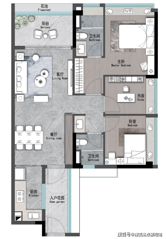 建面约107m² | 4空间二厅二卫