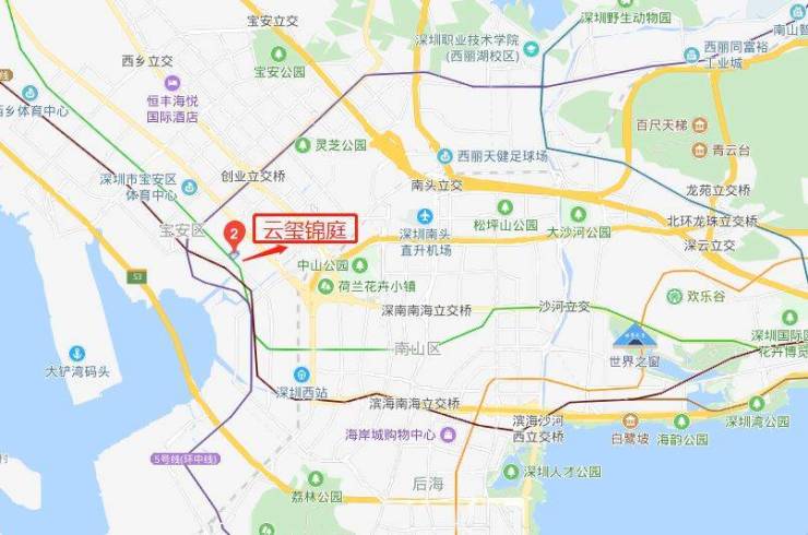 首先来到宝中的云玺锦庭,如图中所示位置,具体位于地铁1号线新安地铁口。