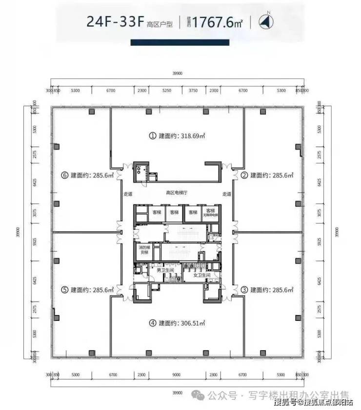 标准层面积:1700㎡