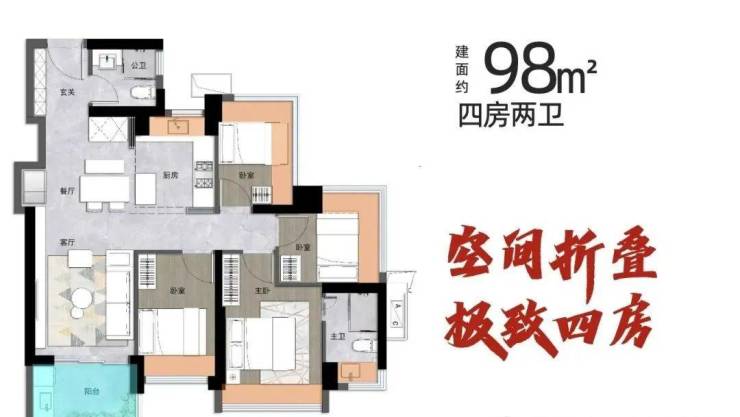 【约98㎡4房2卫】