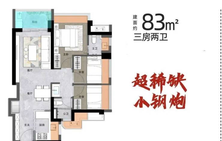 【约83㎡3房2卫】