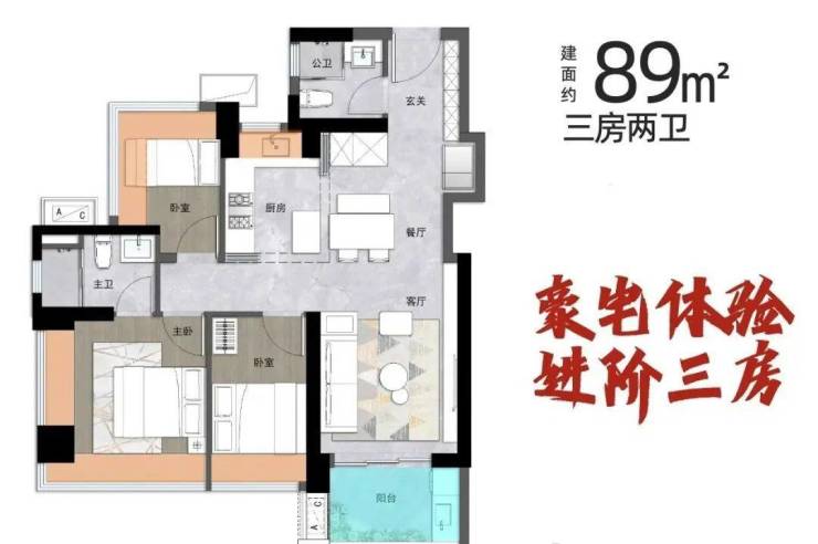 【约89㎡3房2卫】
