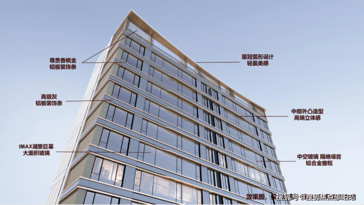 足以代言企业形象的建筑品质, 以国际前沿视野,打造独具匠心且有现代感的公建化立面(铝板玻璃幕墙),充分演绎豪奢及前卫质感