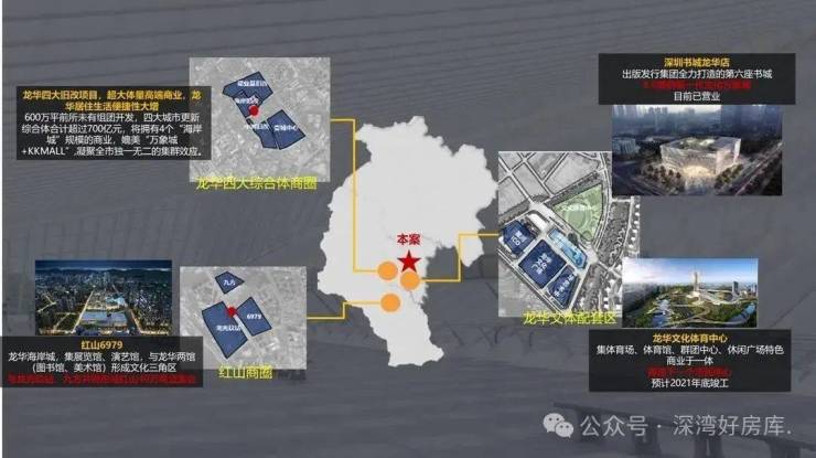 “一城一广场两中心”4大重量级文体配套:深圳书城龙华城、龙华文化广场、龙华文化体育中心、龙华文化艺术中心;