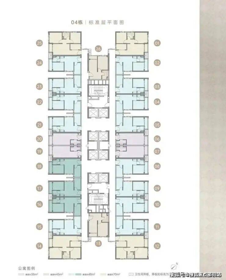 宸悦府的公寓产品38-70平1-2房,45F(1470户),3梯14户(部分楼栋8梯26户),类住宅设计。