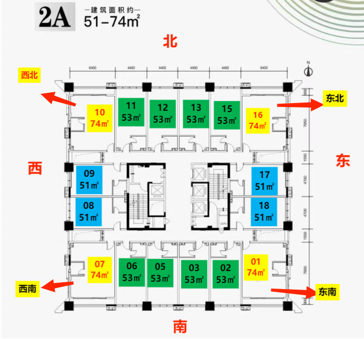 梯户比:公寓,4梯20-24户;商办:4梯16户