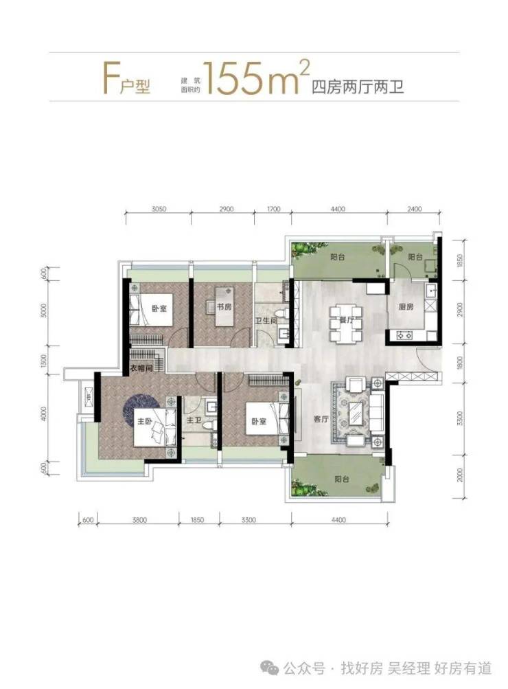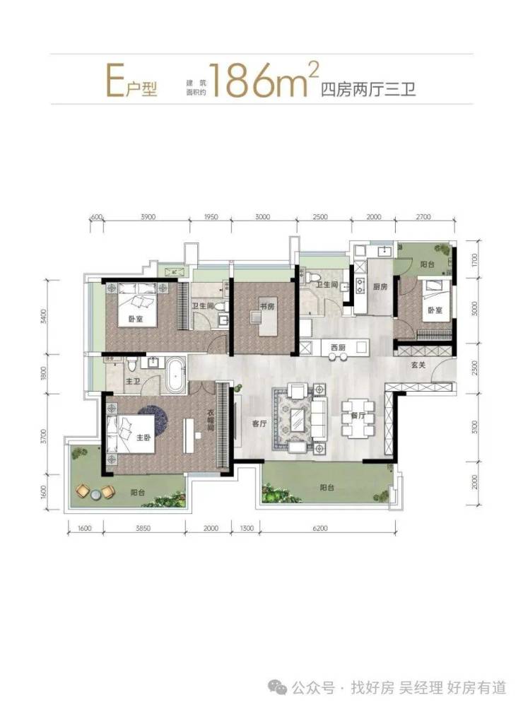 - 布局:竖厅双阳台,四开间朝南,主卧套间+独立衣帽间,中西双厨设计。