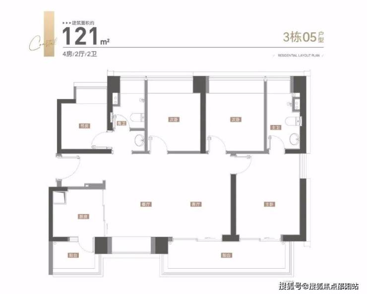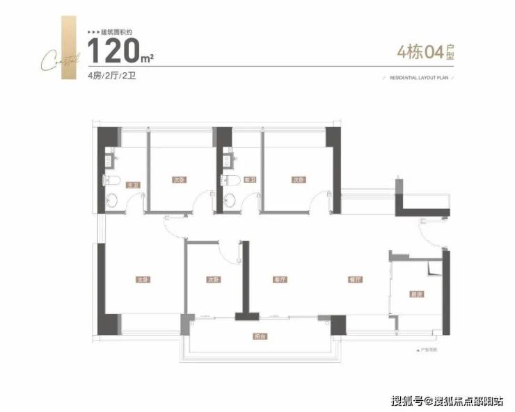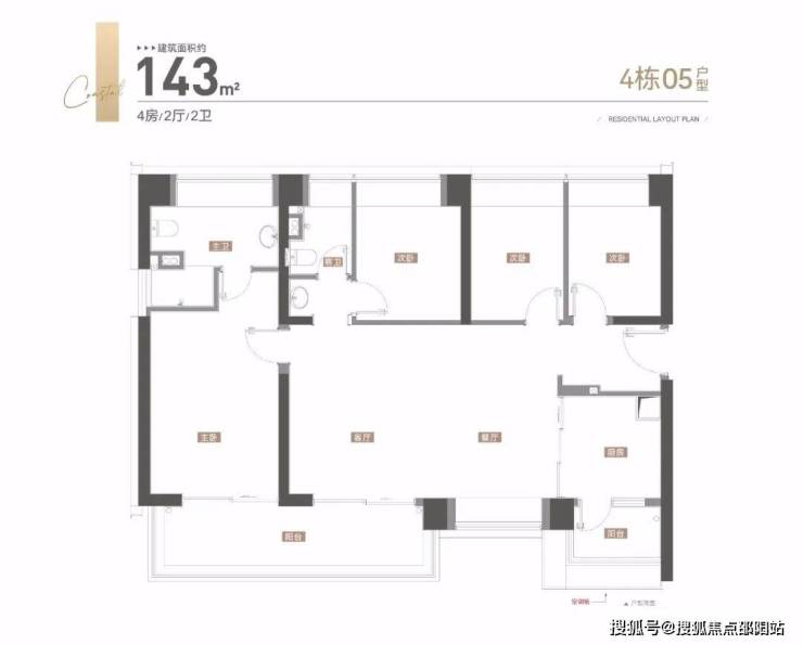 01户型为双龙抱珠的143平4房2卫,大开间大尺度朝南,俯瞰整个海岸公园中轴景观,仅41席。01户型采用客厅和厨房双阳台设计,厅出阳台,宽约5.65m、长约9m;客厅两边是四个卧室,每个卧室都有飘窗,户型整体布局方正;双龙抱珠户型的2个卧室和客厅采光是正南朝向,总长约12m,采光面充足,视野景观俯瞰整个海岸公园中轴,一览无余。