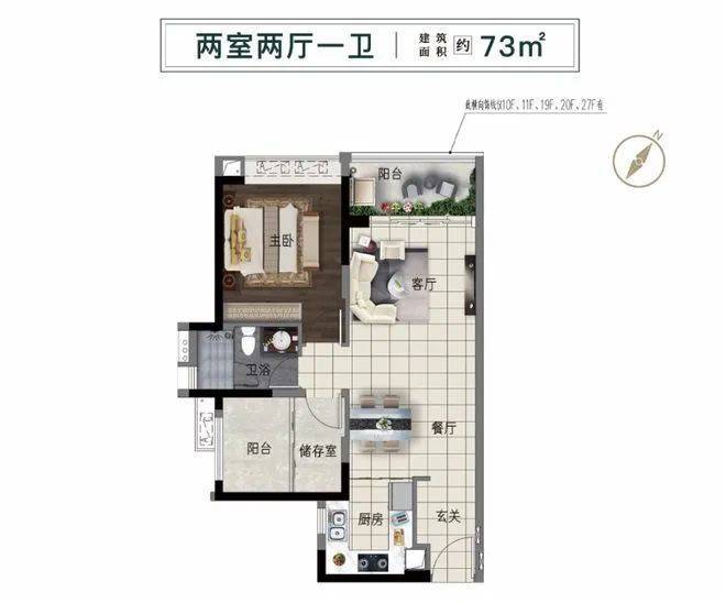 建面约73㎡的江景两室,是目前项目最受欢迎的户型,也是适合刚需客群的选择。