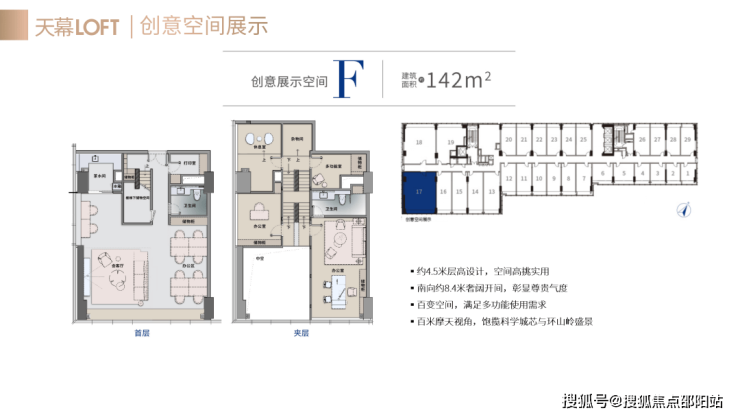 超百米天际高度,南瞰科学城繁华万象,北拥尖峰岭静谧绿意;全玻璃幕墙,勾勒简约现代轮廓;约32-150㎡(主力32-50㎡)多样户型选择,自住舒适,办公高效,4.5 米层高,上下灵动分区,户型方正,采光通透。