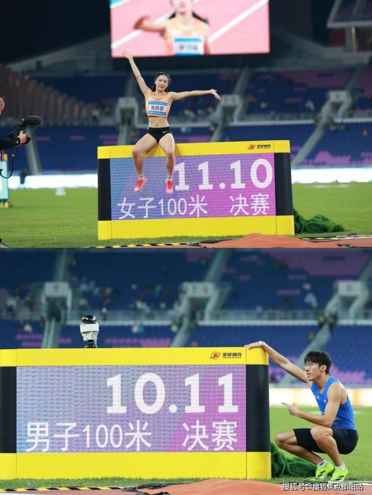 女子100米决赛,未满17岁的陈妤颉自起跑便处于领先位置,最终以11秒10的成绩夺得冠军。这个成绩不仅刷新了由她自己保持的亚洲青年(U20)纪录,也成为全运会历史上最年轻的女子100米冠军。34岁的广西队名将韦永丽以11秒37的成绩夺得银牌,安徽队的史琳琪以0.01秒之差收获铜牌。
