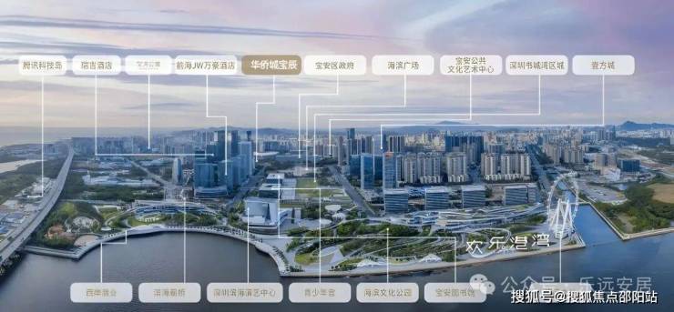 人文圈:湾区之光摩天轮、深圳滨海演艺中心(湾区之声)、湾区之眼深圳书城湾区城(建设中)、滨海廊桥、滨海绿厅、宝安公共文化艺术中心(建设中)等丰富多彩的人文配套环绕