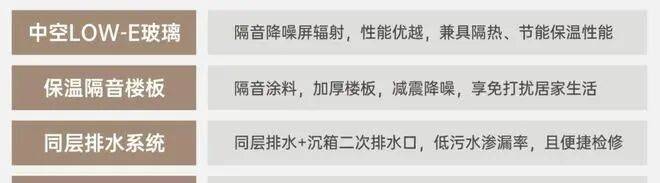 精益求精,高标准打造中空LOW- E玻璃、保温隔音楼板、同层排水系统、6S安防系统等,减少生活困扰,精工品质筑家,致敬美好生活!
