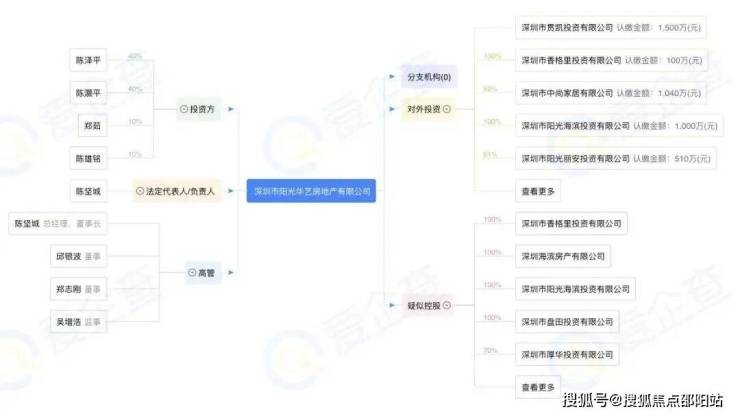 阳光华艺房地产公司已深耕深圳23年,主营房地产开发,旗下有建筑施工企业、物业管理公司、酒店经营管理公司等,运营有自有品牌酒店,已经成功开发了阳光华艺大厦、南山城市花园、流塘阳光花园、阳光海滨花园等多个旧改楼盘,在行业内颇有名气。