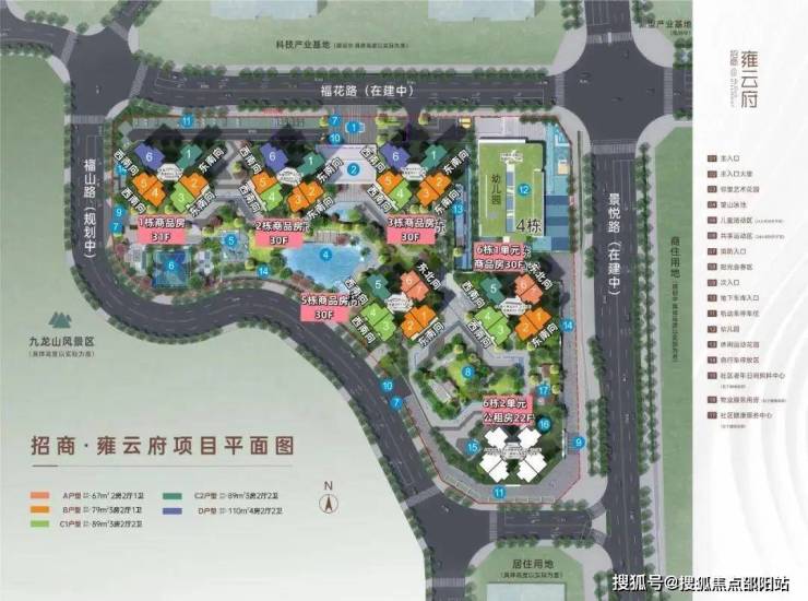 招商雍云府,占地面积约2.7万㎡,建筑面积9.5万㎡,容积率3.59,共由6栋22-31F住宅组成,其中1栋商品房31F,2/3/5栋商品房30F,6栋1单元商品房29F,6栋2单元公共租赁住房22F,4栋是9班幼儿园。