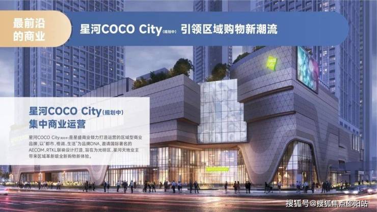 星河天地大社区规划引进的星河COCO City,是星盛商业运营的区域型商业品牌,以“都市、格调、生活”为品牌DNA,邀请国际著名的AECOM、RTKL联袂设计打造。高端休闲业态覆盖,一站式满足饮食、商务、娱乐、趣玩等需求。
