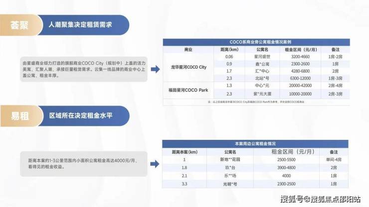 距离本案约1-3公里范围内小面积公寓租金高达4000元/月,看得见的租金收益。