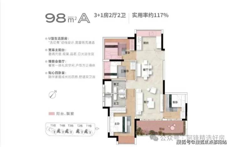 先说说约98平户型,可改造为3+1房2厅2卫格局,适合改善家庭一步到位。