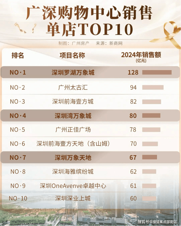 2024年广深商场销售额,前五里面万象城占了2座,深圳罗湖万象城更是华南第一。建面约19万㎡的白鹅潭万象城将极大提升城市商业格局,是4条地铁交汇的TOD,2万方的滨水公园也由华润运营。